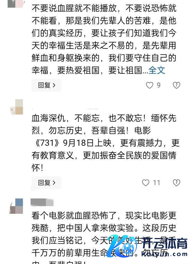 对此,好多网友也纷繁暗示不明,合计现实比电影愈加破坏,应该让18岁以下的孩子全部不雅看,让他们谨记历史,了解先烈遇到的难受,从小种下一颗爱国的种子,从而愈加爱戴如今九牛二虎之力的幸福糊口。