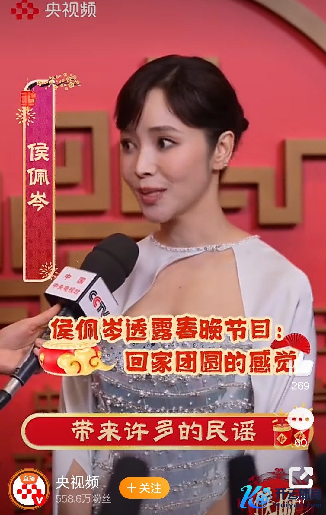 据央视频,侯佩岑聊到我方参演的春晚节目时露出,此次带来许多民谣,(不雅众)不错回忆、想念,有许多和睦,“看见的是地盘上的韧性,还有东谈主们的故事、咱们的童年,预测异日,但愿马年有许多新沸腾,这个节目是道喜、预测、和睦、诱骗,但愿在外游子回家团圆的同期,感受到中中文化的氛围。”