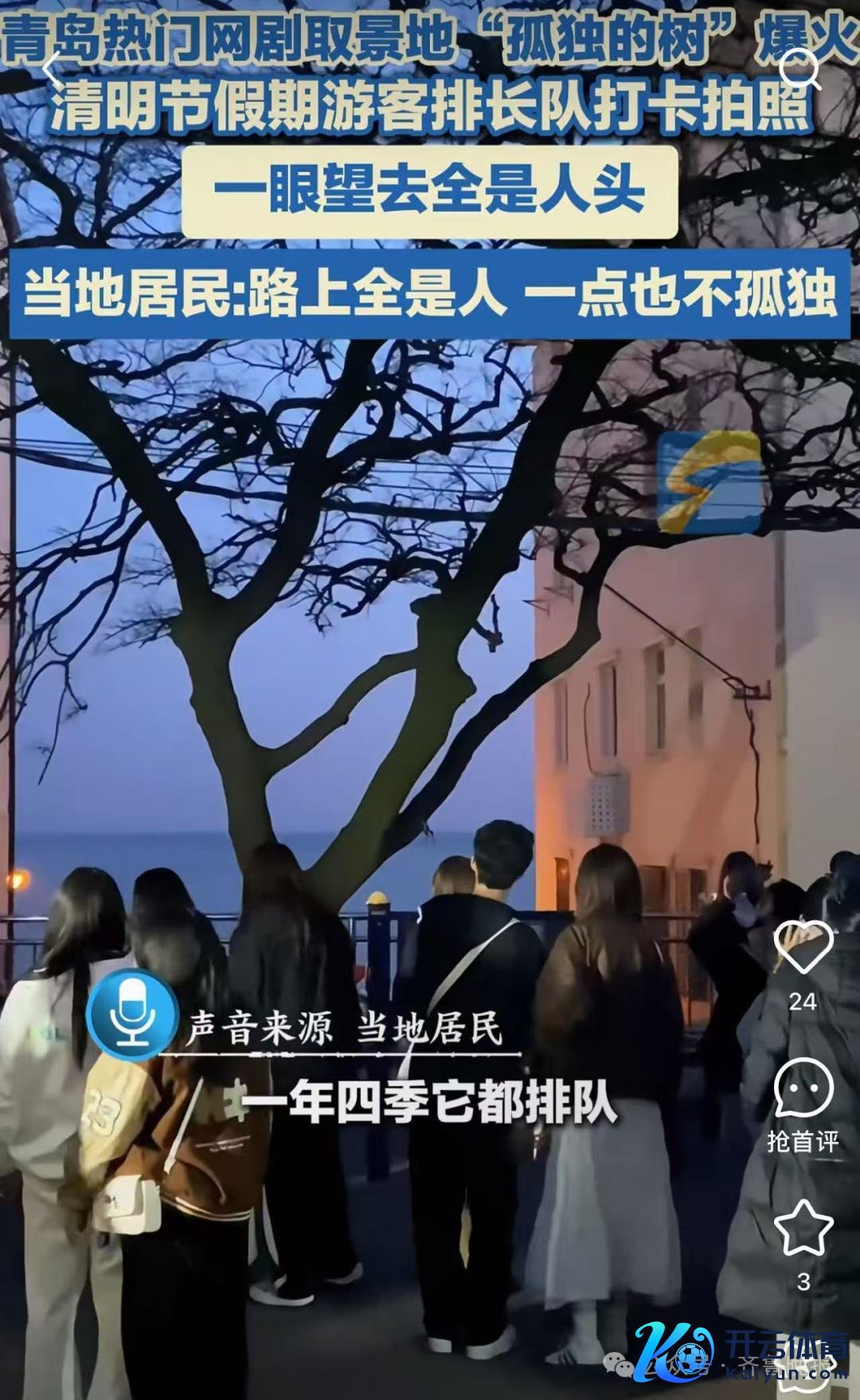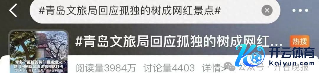 此外,青岛市南区文化与旅游局使命主说念主员暗意,“一身的树”之是以爆火,因为背靠大海遮拦少,能为年青东说念主提供情感价值,加之已经是《当我驰骋向你》的同款取景点,为此处打卡地带来了流量。