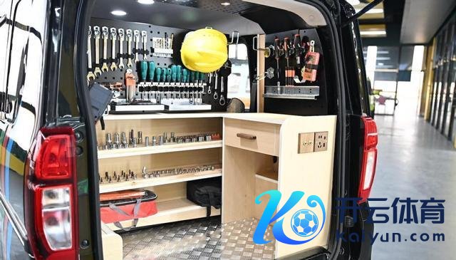 除了这台“露营车”外,五菱之光EV的官改决议中还包括了一台“搬动器用车”,除了雷同有行李架等外部后装件外,车辆的后备厢更是被改装成为了一个器用操作间,无数五金器具被收纳在洞洞板上,而车身、地板还有细心磕碰剐蹭的金属粉饰板。由于五菱之光EV配有后备厢12V电源,这使得车辆好像通过内装插座来使用一些袖珍电器。这辆“搬动器用车”除了能成为创富器用外,更能成为我们用户专属的职责室,各式手工件齐不错在这里完成,若是家东谈主或一又友有个什么小修小补,这专车搬动然而很抢眼的。
