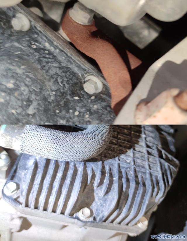 发动机跟变速箱的油底壳啊,根柢儿就莫得拆卸过的印子,也不见有渗漏的地儿呢!
