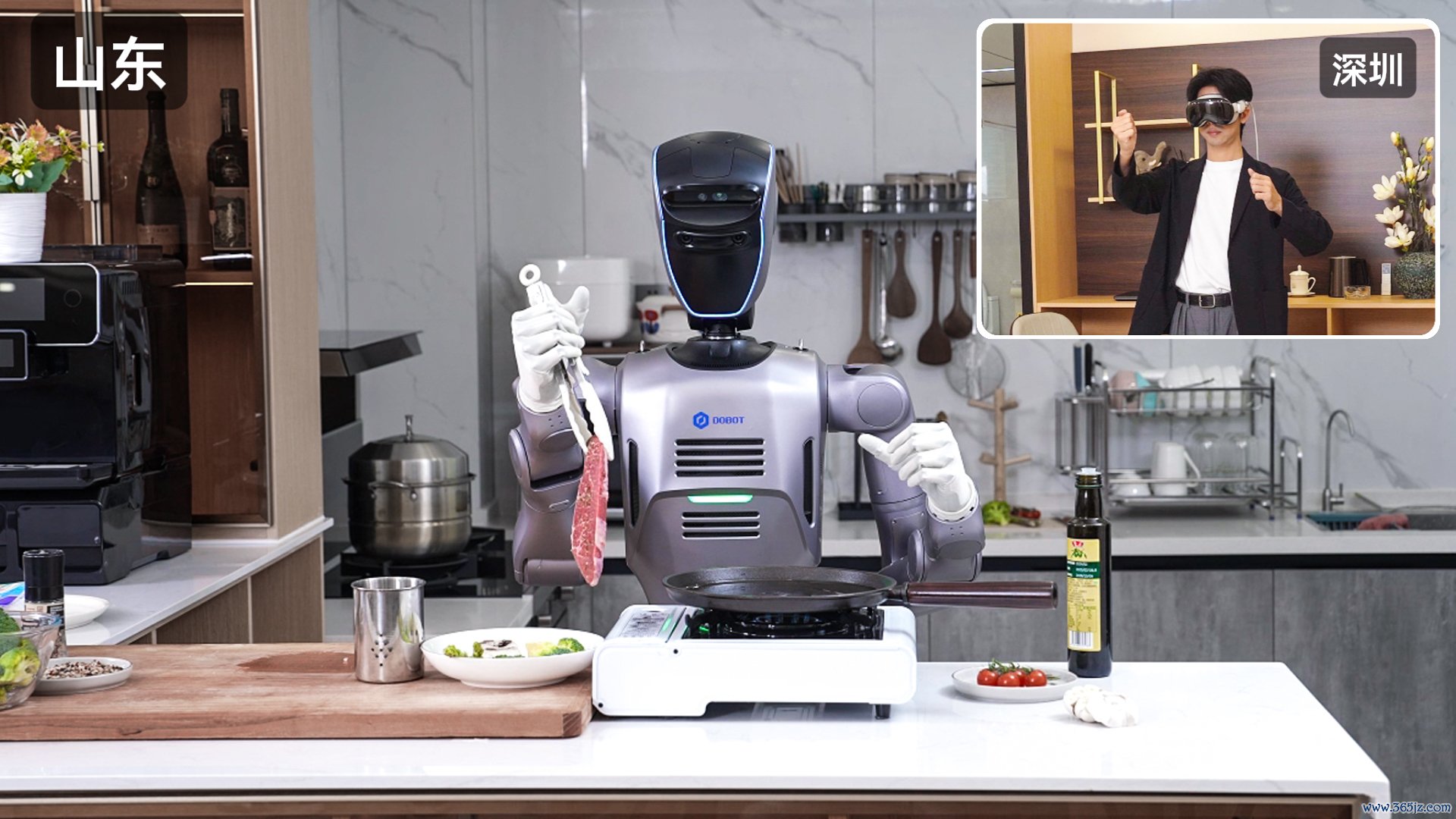 在最新演示中,一位工程师戴上爽快VR头显,在深圳的操控中心挥动双手,远在1800公里外的山东家中,“Atom”东说念主形机器东说念主同步实践每一个四肢:开雪柜、取牛排、下锅、翻面,致使在油花飞溅时优雅逃匿,四肢盛开当然,仿佛真东说念主在场。当牛排被稳稳地端到孩子眼前的那一刻,咱们看到的不仅是工夫的古迹,更是最初沉的亲情传递。