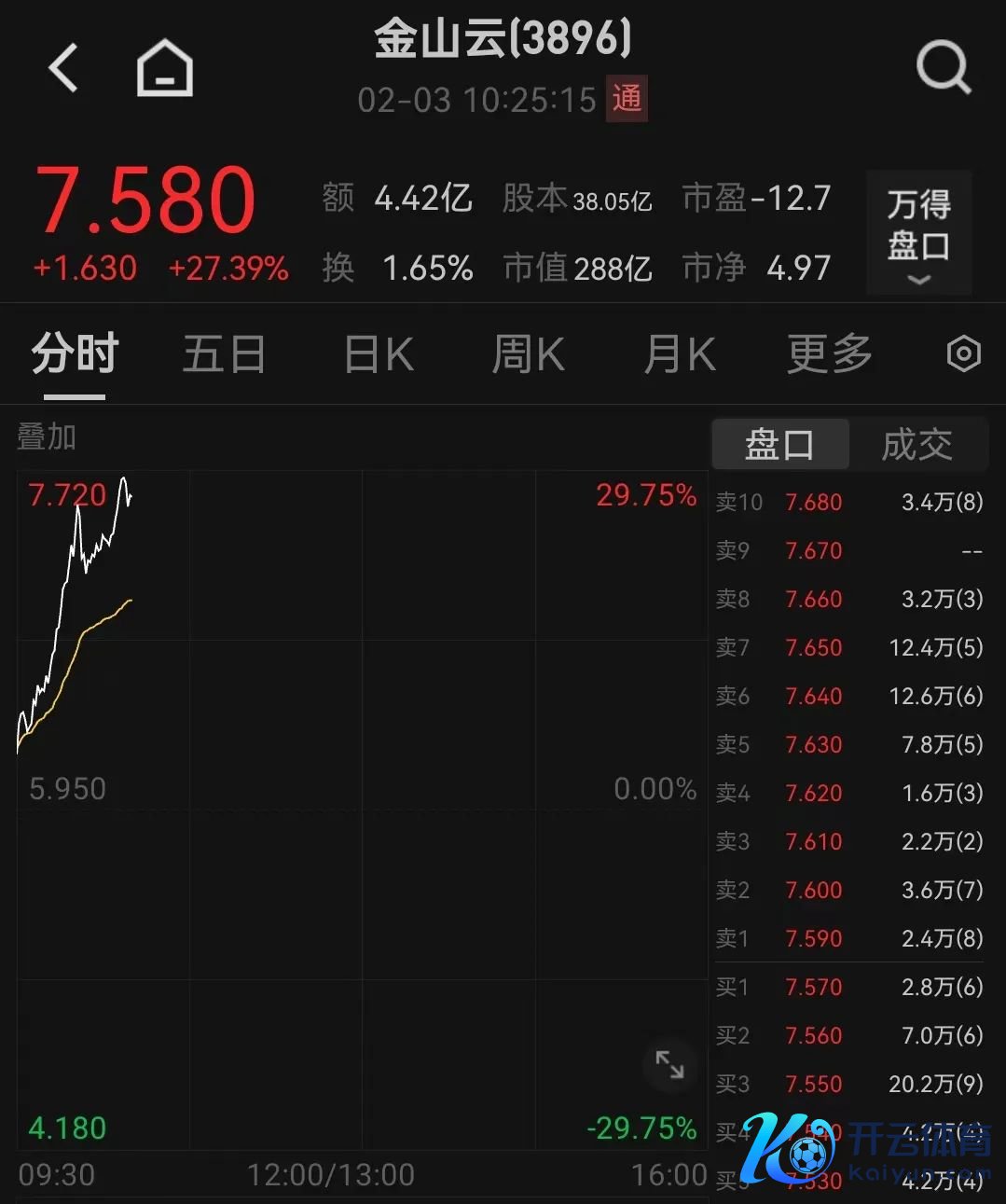 金山云暴涨近30%
