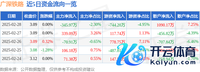 本站音尘,法规2025年2月28日收盘,广深铁路(601333)报收于3.09元,高涨0.0%,换手率0.86%,成交量48.68万手,成交额1.5亿元。