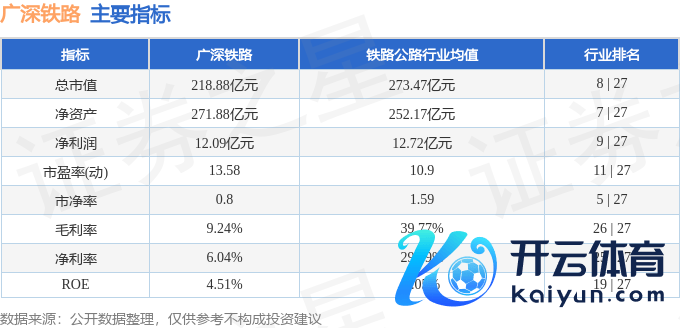 广深铁路2024年三季报暴露,公司主营收入200.3亿元,同比上升4.44%;归母净利润12.09亿元,同比上升18.67%;扣非净利润11.94亿元,同比上升19.48%;其中2024年第三季度,公司单季度主营收入71.05亿元,同比上升4.52%;单季度归母净利润2.97亿元,同比下降13.04%;单季度扣非净利润2.93亿元,同比下降13.12%;欠债率26.41%,投资收益2622.46万元,财务用度4596.89万元,毛利率9.24%。广深铁路(601333)主买卖务:主要缱绻铁路客货运载业务,并与香港铁路有限公司合营缱绻过港纵贯车游客列车运载业务,同期还受寄予为武广铁路、广珠城际、广深港铁路、广珠铁路、厦深铁路、广东铁路、南广铁路、贵广铁路、珠三角城际、茂湛铁路、深茂铁路、梅汕铁路、广石铁路、赣深铁路、南沙港铁路、博贺港铁路和广汕铁路等提供铁路运营处事。