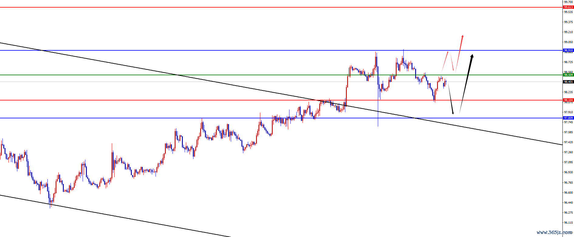 举座上97.80区域多,防护5好意思金,标的98.50-98.90(纵情后看延续)
