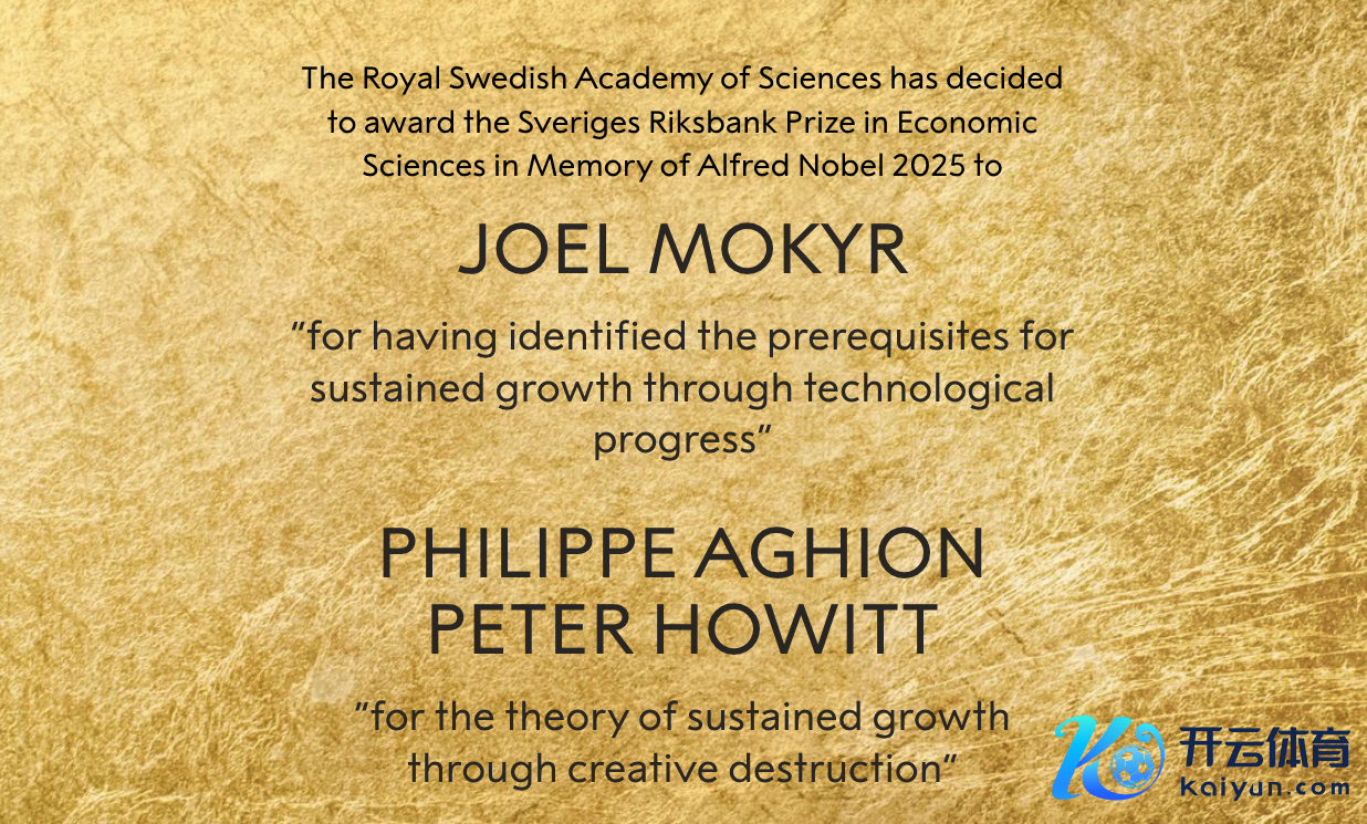 瑞典皇家科学院周一告示体育游戏app平台,乔尔·莫基尔、菲利普·阿吉翁和彼得·豪伊特因其对于创新与“创造性崎岖”力量怎样股东经济抓续增长的商榷着力,荣获2025年诺贝尔经济学奖。