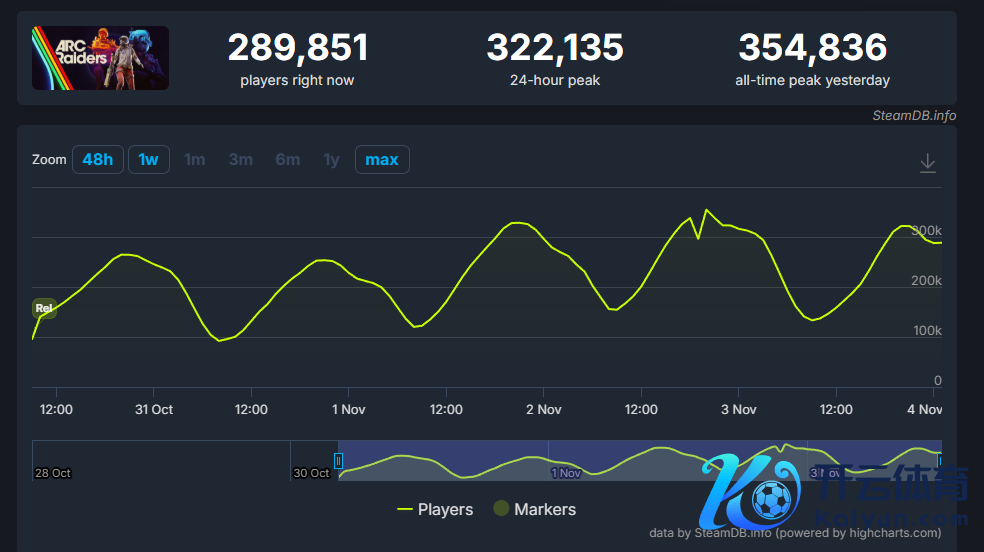 在峰值时刻,仅Steam平台就承载了354,836名同期在线玩家,这一数据使《ARC Raiders》在Steam平台的收效过程并排《给他爱5》、《星空》、《怪物猎东说念主:天下》与《无主之地4》等顶级大作。