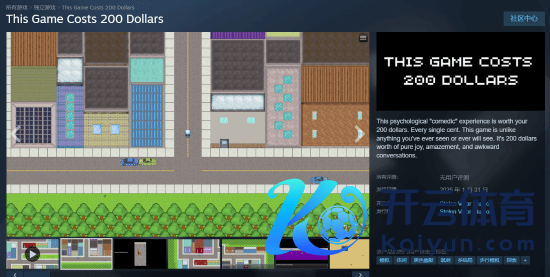 一款名为《This Game Costs 200 Dollars》(“本游卖200好意思元”)的游戏已在Steam上发布。这款游戏最引东谈主瞩诡计地浅近是其售价,售价正如其游戏名中的200好意思元,在国区则是1400东谈主民币!
