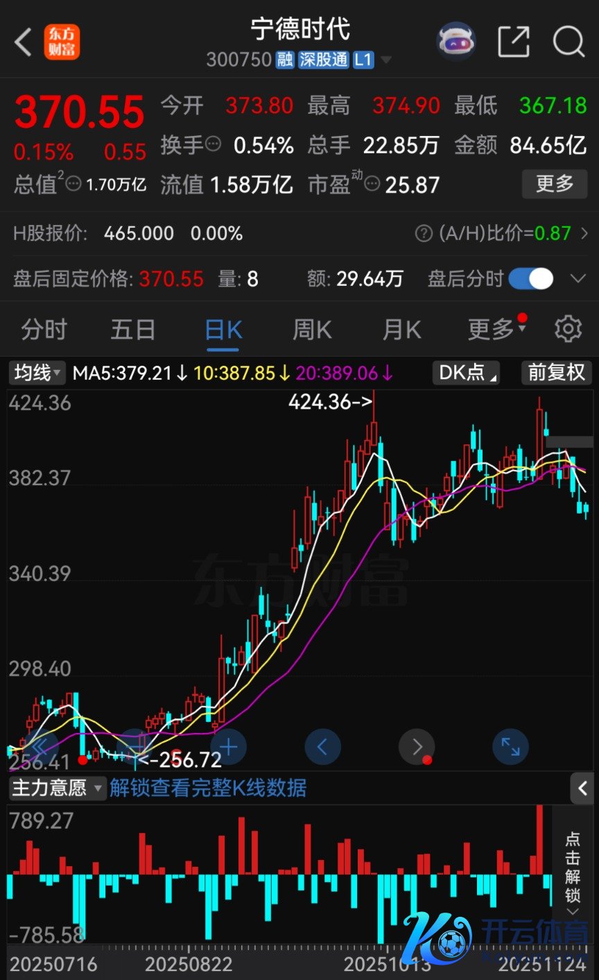 阻抑11月24日收盘,宁德时期A股股价报370.55元/股,涨幅达0.15%,总市值为1.70万亿元。
