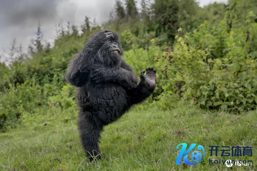 “那天,咱们遭遇了一群名为Amahoro的公共庭,它们调和在丛林旷地上,成年猩猩舒畅觅食,幼崽们则忻悦地玩耍。一个年青的雄性十分思骄慢他的杂技禀赋旋转、翻腾、高踢。不雅看他的饰演让我感到地说念的满足,我很欢笑在这张相片中捕捉到了他呆板的精神。”