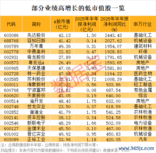 部分功绩高增长的低市值股出炉部分功绩高增长的低市值股出炉