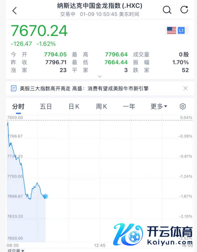 1月9日晚间,好意思股三大指数盘中拉升,说念指涨超100点,纳指涨约0.5%,标普500指数涨约0.4%。