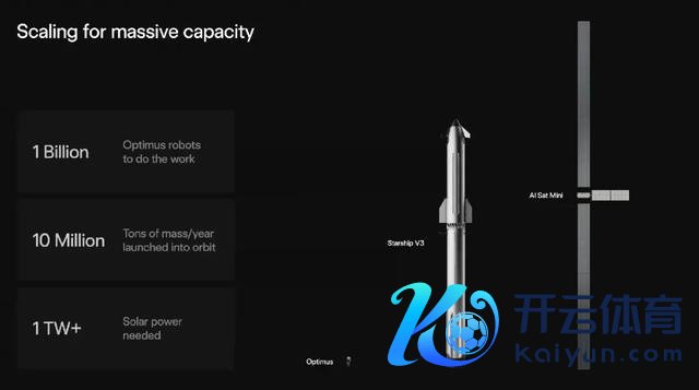 他现场展示了一张AI Sat Mini的插图(据称按比例绘图)。这颗“迷你”卫星以宏大的太阳能阵列为主,伸开后长度逾越170米,比SpaceX 星舰 V3火箭(124米高)还要长近50%!单颗卫星可提供100千瓦的电力,专供板载AI处理器使用。