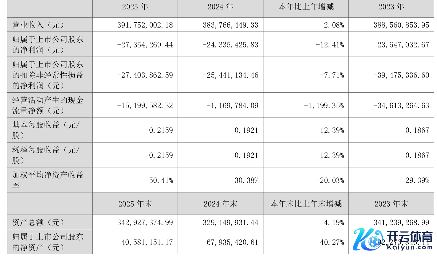 中证智能财讯杭州高新(300478)4月11日露馅2025年年度论说。2025年,公司结束生意总收入3.92亿元,同比增长2.08%;归母净利润赔本2735.43万元,上年同时赔本2433.54万元;扣非净利润赔本2740.39万元,上年同时赔本2544.11万元;运筹帷幄步履产生的现款流量净额为-1519.96万元,上年同时为-116.98万元;论说期内,杭州高新基本每股收益为-0.2159元,加权平均净钞票收益率为-50.41%。